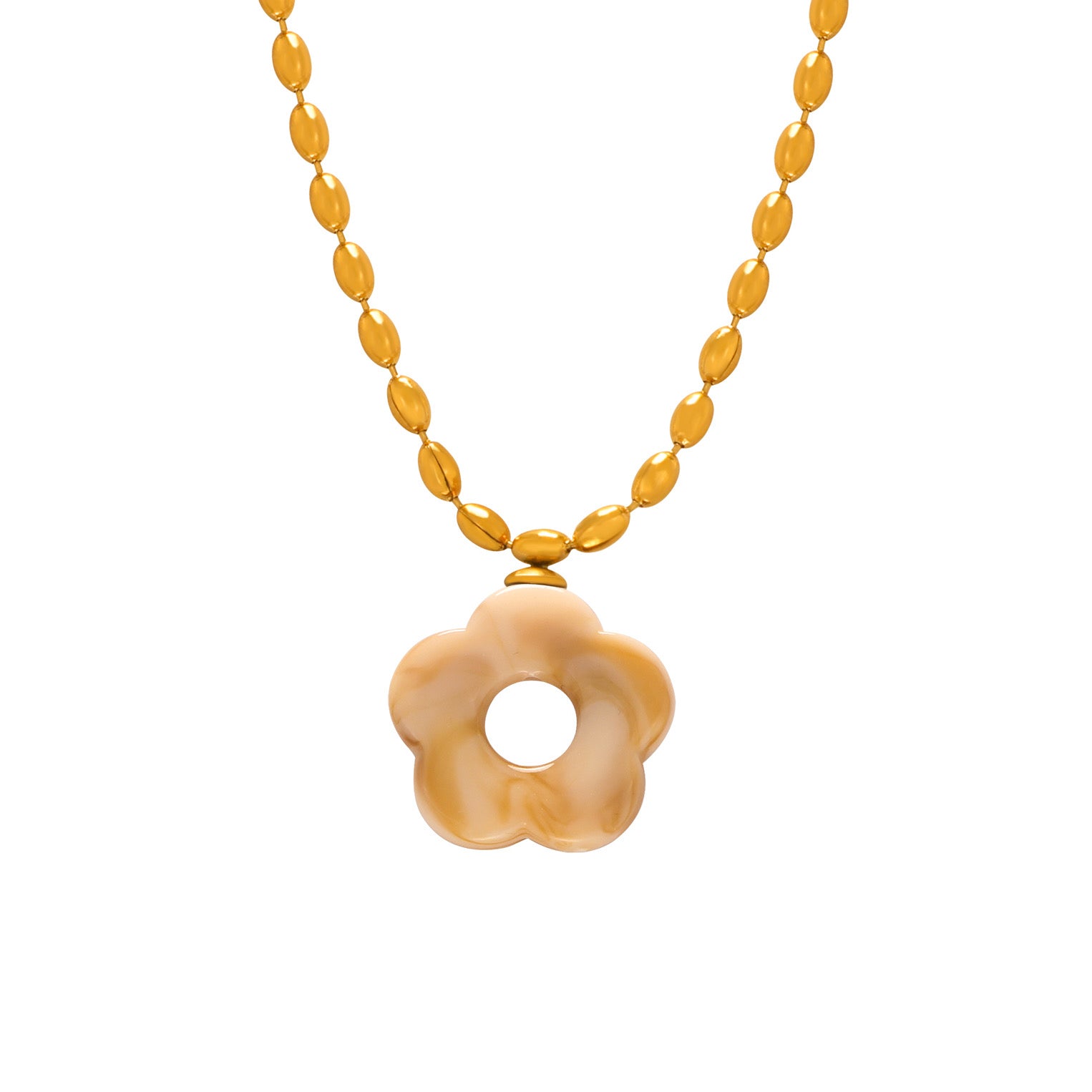 Cadena y pantallas en stainless steel con flor en acrílico