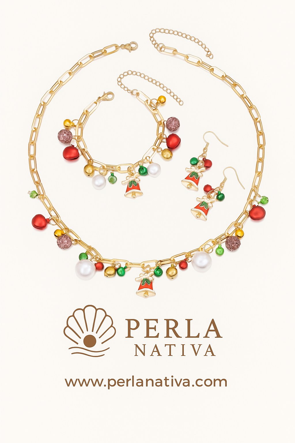 Set de Collar, Pantallas, Pulsera Gorro Navideño.